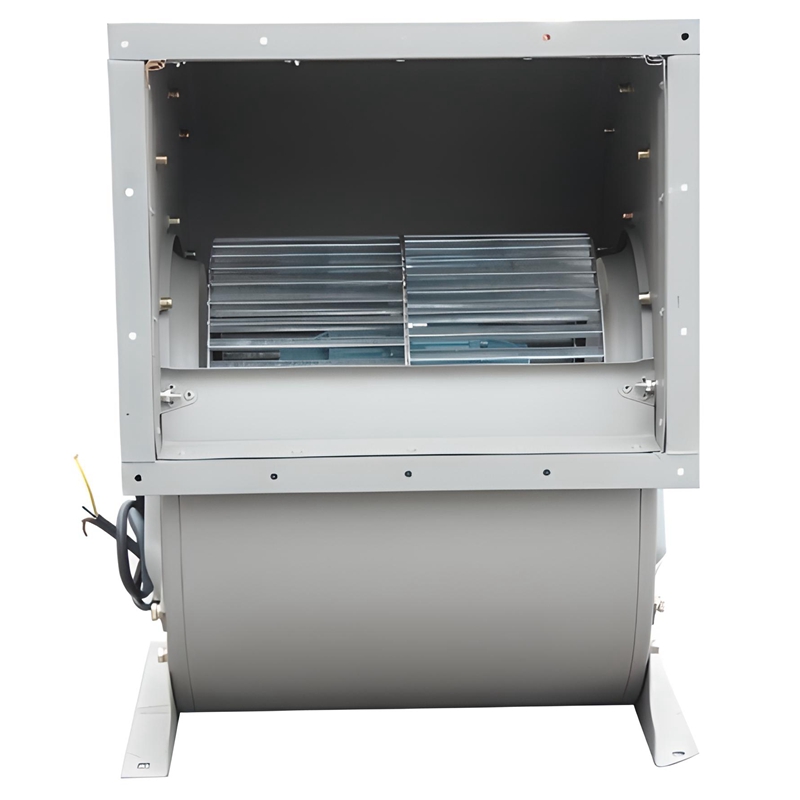 The square discharge outlet aligns easily with standard duct systems. Key parts are positioned for quick access, helping reduce downtime during routine checks.