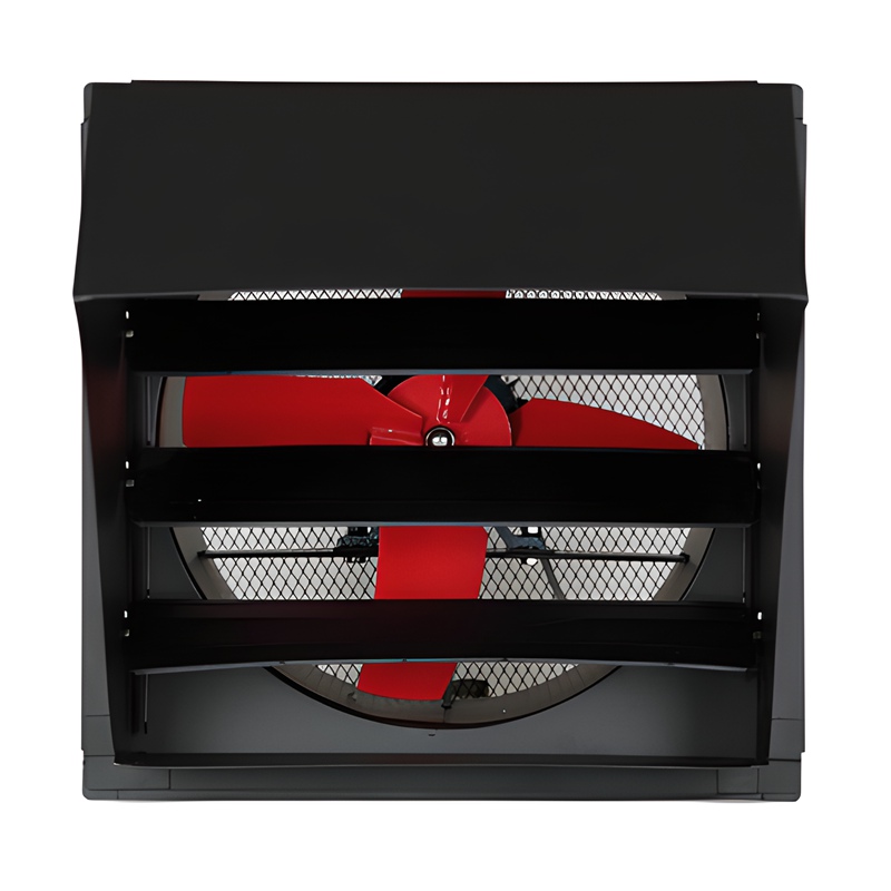 The Industrial Wall-Mounted Exhaust Fan with Square Rain-Proof Shutter is a device for moving air efficiently through walls in factories, workshops, and commercial spaces. This wall exhaust fan works quietly, uses energy efficiently, and is simple to install, while the square rain-proof cover protects it from weather and dust.