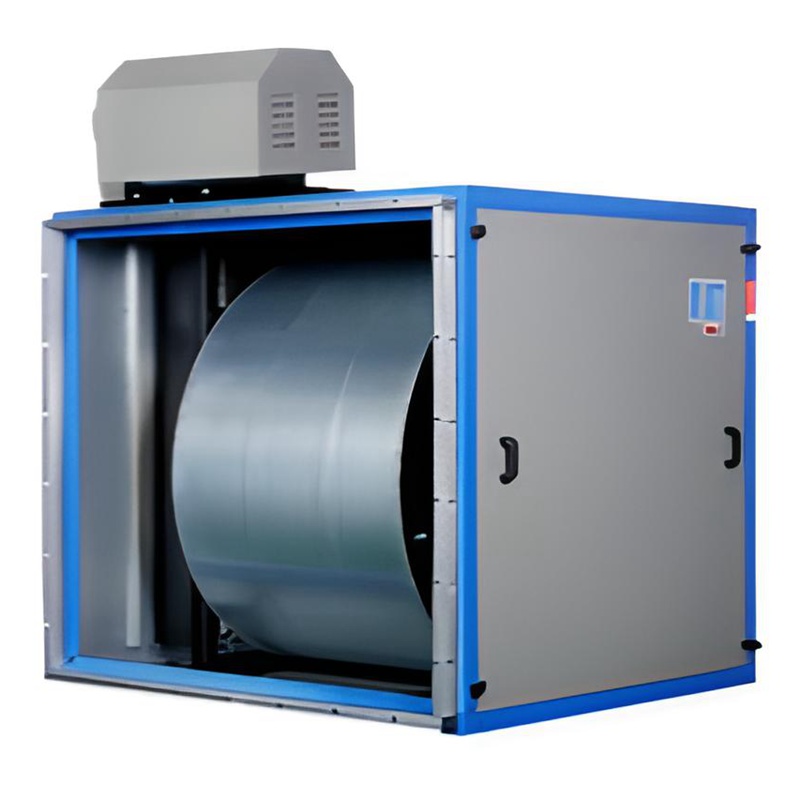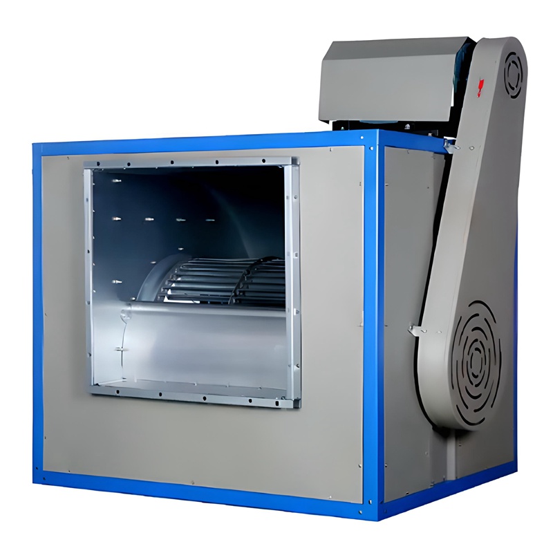 Centrifugal box-type fan performance with reduced vibration for continuous operation.